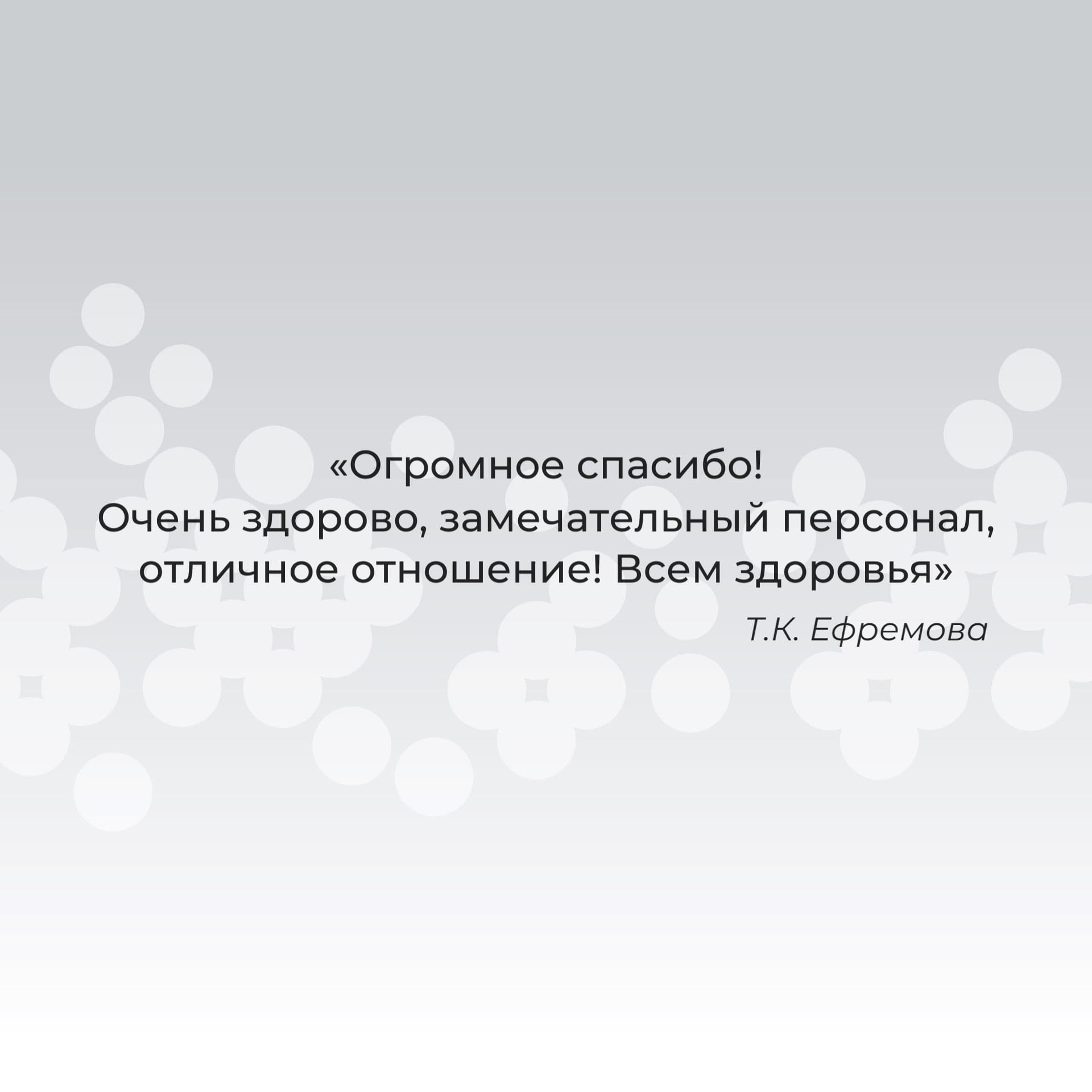 «Огромное спасибо! Очень здорово, замечательный персонал, отличное отношение! Всем здоровья».